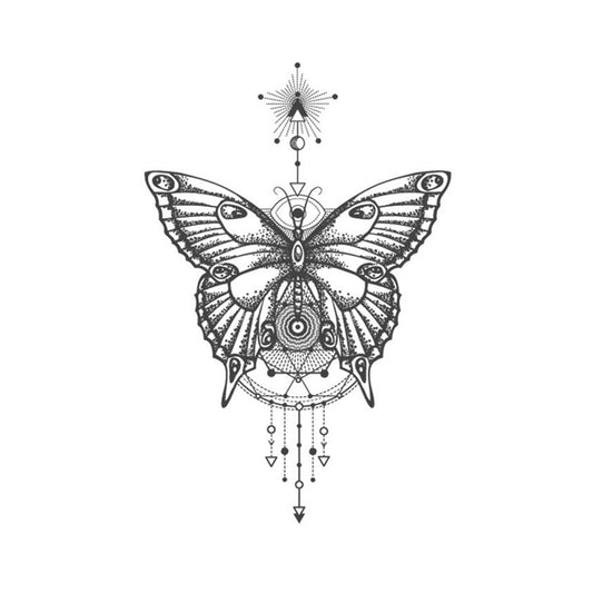 Fly to the Moon Temporary Tattoo – Butterfly & Crescent Moon Design
